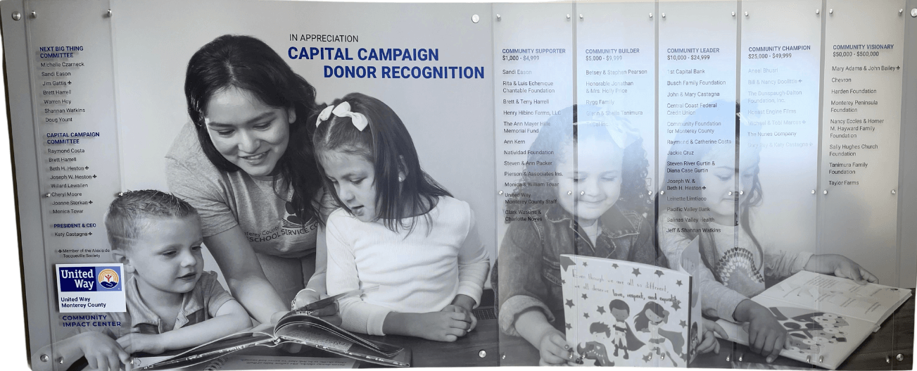 For more information about Naming Right Opportunities, contact Lynda Patrick, Vice President, Resource Development at Lynda.Patrick@UnitedWayMCCA.org or by calling (831) 318-1973.