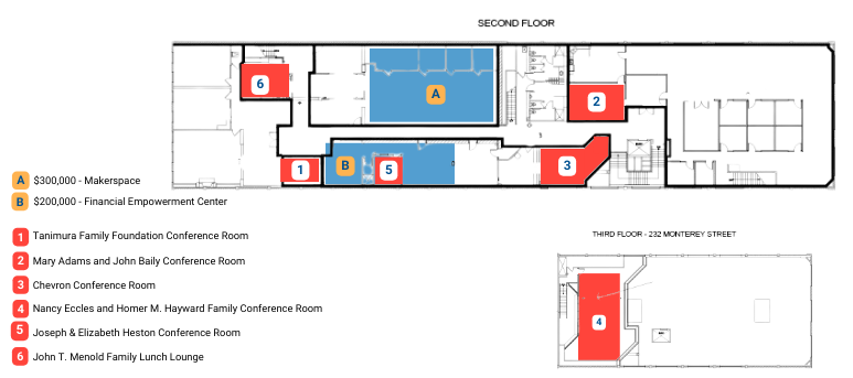 Naming rights are a unique opportunity that allows individuals or organizations to leave a lasting impact in our community and support United Way. By securing naming rights for a room in the Community Impact Center, you leave an indelible mark on UWMC’s legacy and in Monterey County. These named spaces not only serve as a recognition of your generosity but also provide a sense of pride and ownership. It's an incredible way to showcase your support while inspiring others to join in creating a positive and meaningful impact. There are currently five rooms available, all of which are highly visible to the Monterey County community.
